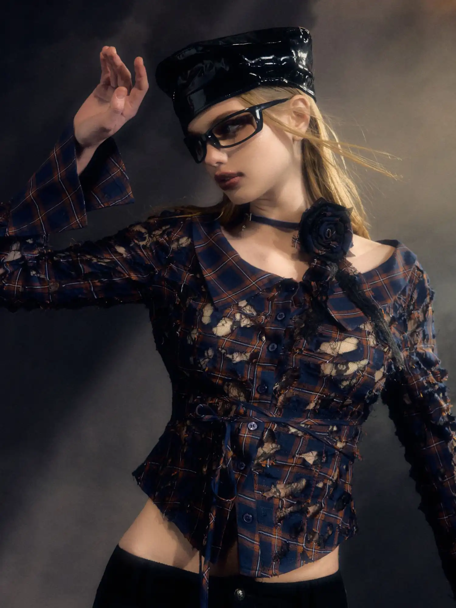 Make a dramatic statement with this distressed lace plaid corsage featuring gothic vintage sophistication and flower pin elegance. This dark accessories piece combines romantic jewelry charm with statement impact and elegant brooch refinement.