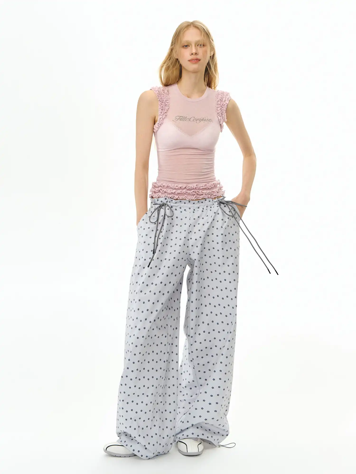 Floral Pleated Track Pants
