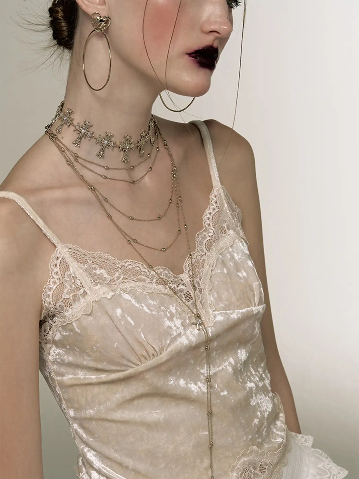 This delicate multi-layered chain with a dainty cross is the perfect mix of elegance and edge. Ideal for vintage gold cross necklaces, minimalist layered pendant jewelry, and versatile necklaces for everyday outfits.