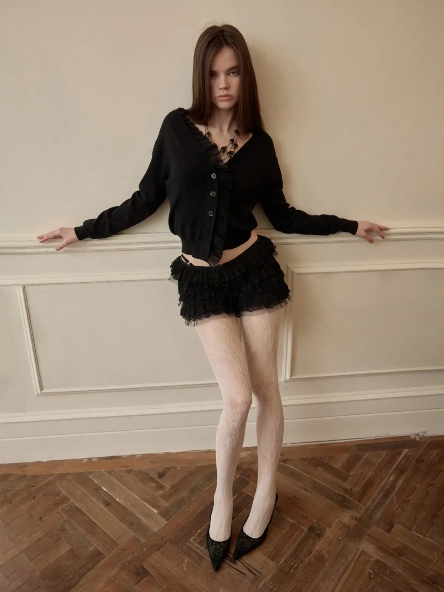 Victorian Y2K Aristocrat Cropped Ruffle Cardigan—